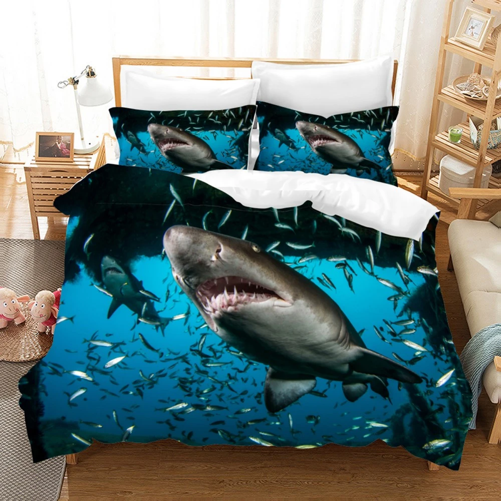 Kids Sharks Bedding: One shark…two shark…three shark…four… that is exactly what your kids will be doing when you get them this adorable baby shark bedding!